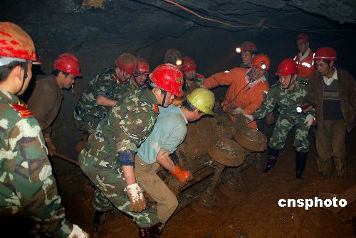 12月13日,安徽武警總隊蕪湖支隊武警官兵在井下救援。當天,救援指揮部調(diào)集武警蕪湖支隊40名官兵前來增援地下清淤及鉆孔工作,井下負十三米礦井巷道清除淤泥向前推進16.8米、通風口鉆孔17米。當天下午,救援指揮部救援人從從探測儀上發(fā)現(xiàn),井下有生命跡象。12月11日18時許,安徽繁昌縣陽沖鐵礦發(fā)生一起井下坍塌事故,坍塌的泥石堵住了安全出口,正在作業(yè)的7名礦工被困井下。中新社發(fā) 揚勛 攝