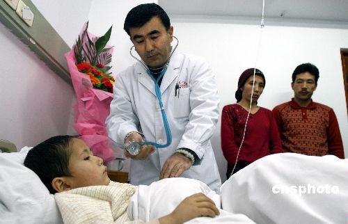 新疆是心血管疾病的高發(fā)區(qū),目前患有先天性心臟病的兒童約十五萬,但每年有條件接受治療的不足兩千例。近年來,中國宋慶齡基金會與宋慶齡(新疆)婦女兒童醫(yī)院合作進行新疆貧困地區(qū)少兒先天性心臟病的治療工作。二00七年,宋慶齡(新疆)婦女兒童醫(yī)院通過各地地方醫(yī)院和民政部門對貧困患兒進行篩選,并由中國宋慶齡基金會撥款四點五萬元人民幣對三名篩選出的患兒進行免費治療,其余兩名哈薩克族、柯爾克孜族的先天性心臟病患兒正在新疆范圍內(nèi)進行篩選。該項工作將在二00八年繼續(xù)進行,累計將免費為十位少數(shù)民族先天性心臟病患兒進行手術(shù)治療。