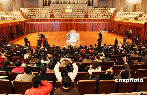 中國國家大劇院將于12月22日和23日舉辦盛大開幕音樂會,并由此拉開國家大劇院首個演出季的帷幕。作為最重要演出的開幕音樂會,其開幕式音樂會的音樂總監(jiān)陳佐煌特意在節(jié)目演出的安排上凸顯了中國文化,邀請的樂團、指揮家、演奏家均來自中國。據(jù)悉,本場音樂會將推出最具代表性的古箏、二胡、琵琶、笛子和揚琴,由當(dāng)今中國民族音樂界五位頂級演奏家馬曉輝、吉煒、張強、龐波兒和戴亞聯(lián)袂演出經(jīng)典民樂作品。圖為藝術(shù)家參觀國家大劇院音樂廳。中新社發(fā) 鄭雄增 攝