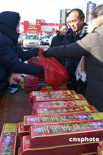 12月30日,北京市開始大規(guī)模向五環(huán)外沃爾瑪?shù)却笮统辛闶劬W(wǎng)點(diǎn)配送花炮,五環(huán)外的一些臨時(shí)網(wǎng)點(diǎn)也掛上新頒發(fā)的許可證準(zhǔn)備開業(yè)。元旦節(jié)前,市民可到五環(huán)外的這些零售網(wǎng)點(diǎn)購買花炮。中新社發(fā) 富田 攝