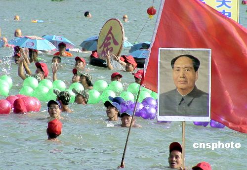 廣西數(shù)千民眾新年冬泳懷念毛主席