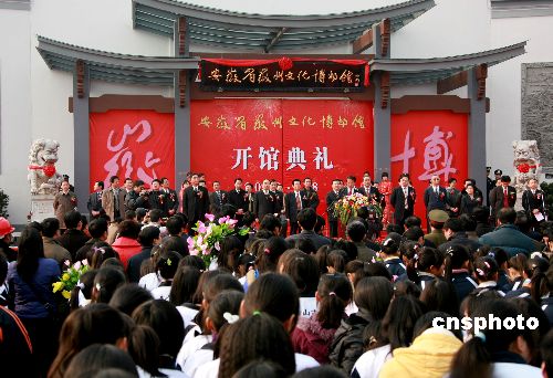2008年1月8日,安徽徽州文化博物館落成開館。該館館藏的近10萬件(冊)歷史藏品全面、系統(tǒng)、完整地展示了徽州文化。博物館坐落在黃山市,占地157畝,建筑面積14000平方米,總投資7000萬元,是集徽州文化展示、收藏、研究、培訓(xùn)、非物質(zhì)文化遺產(chǎn)演繹、交流旅游觀光為一體的國家大型地方綜合性博物館;罩菸幕┪镳^是以徽州文化為基本內(nèi)容、徽州地理山水為背景、徽派建筑風格為基調(diào)的一組多功能徽派風景園林建筑,由陳列區(qū)、收藏區(qū)、文化產(chǎn)業(yè)區(qū)等組成。中新社發(fā) 方也廣德 攝