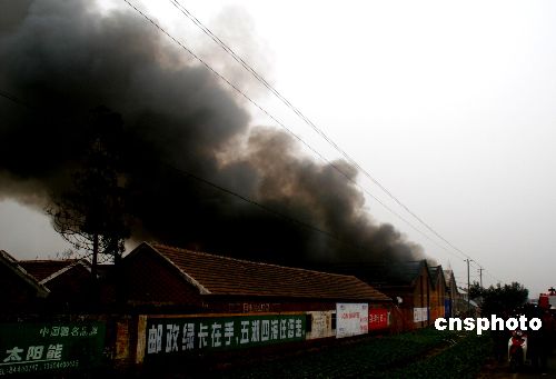 1月10日,江蘇如東縣馬塘鎮(zhèn)一紡織廠起火。如東消防官兵接警后,四輛消防車從不同方向火速趕到出事地點,及時進(jìn)行不同方向撲救。由于火勢兇猛,火勢1個小時才撲滅,三排廠房已被燒毀。損失數(shù)百萬元,無人員傷亡。日前事故原因正在進(jìn)一步調(diào)查中。中新社發(fā) 王必春 攝