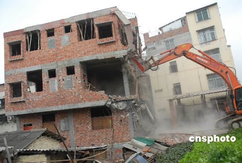 一月十五日,廣西南寧市西鄉(xiāng)塘區(qū)近八百名執(zhí)法人員對該轄區(qū)內(nèi)四戶違法建設(shè)樓房進(jìn)行拆除,拆除違法建筑面積達(dá)兩千平方米。據(jù)悉,目前南寧市私房違法搶建現(xiàn)象較為嚴(yán)重,對城市的規(guī)劃造成了一定影響,市政府對此采取強(qiáng)拆措施。中新社發(fā) 何卓姿 攝