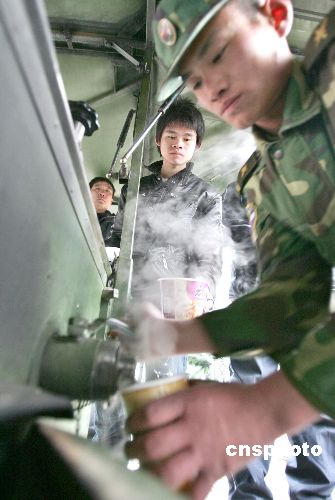 近期由于受大雪天氣影響導致國內大范圍的鐵路、公路交通受阻或中斷,使大批返鄉(xiāng)旅客滯留杭州火車站、杭州火車東站和市區(qū)各大長途汽車站,從1月27日起,杭州市開辟了部分劇院、大廈、會展中心、體育館等公共場所及搭建軍用帳篷等作為滯留旅客的臨時駐留點。至1月30日下午,已先后接待了近10萬人次的滯留旅客,當地的政府部門、企事業(yè)單位、部隊、公安、街道、衛(wèi)生、共青團、市民志愿者等紛紛行動起來,按照“有水喝、有飯吃、有地方安頓、生病有醫(yī)治、困難群眾有救助”的要求,以各種形式盡力為所有滯留旅客提供生活保障和溫馨服務。 中新社發(fā) 李忠 攝