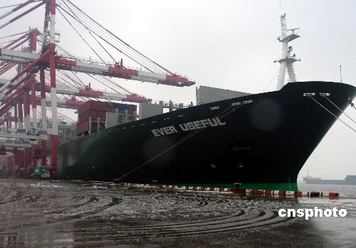據(jù)上海外高橋邊檢站22日消息,因受風(fēng)雪影響,從21日中午至22日中午二十四小時內(nèi),全上海港有近五十艘集裝箱貨輪取消或推遲了靠泊計劃,另有近四十艘集裝箱貨輪延遲了出航時間。隨著下午降雪停止,整個上海港集裝箱裝卸作業(yè)因受風(fēng)雪影響不斷減緩。中新社發(fā) 陸從兵 攝