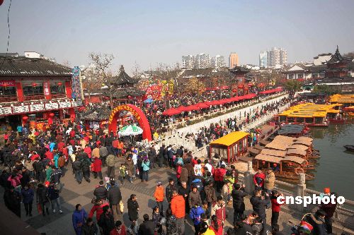 2月7日,南京夫子廟游人如織,人們看花燈、品小吃,參與多種娛樂活動,在歡樂祥和的氣氛中喜度新春佳節(jié)。中新社發(fā) 文寶 攝