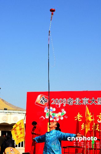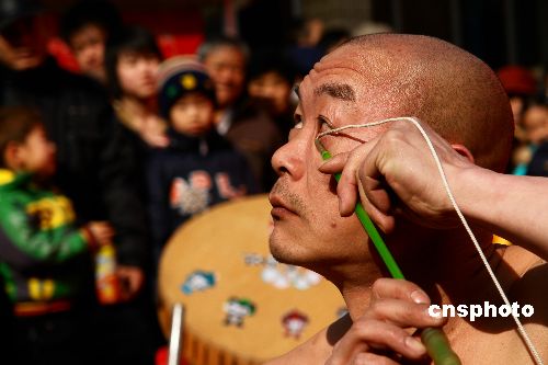 2月10日,在天津樂園春節(jié)廟會(huì)上,來(lái)自民間的藝術(shù)家表演了中國(guó)民間古典絕活,讓節(jié)日游園的市民大飽眼福。中新社發(fā) 展曉仁 攝