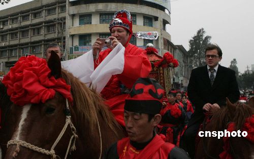 法國(guó)新郎按中國(guó)婚俗迎娶中國(guó)新娘