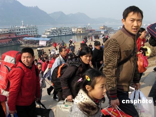 2月15日(正月初九),宜昌大公橋港區(qū)人流如潮,客輪如梭。當(dāng)天,湖北宜昌港區(qū)到發(fā)客輪60余艘次,近20000人次乘船進(jìn)出川江,長(zhǎng)江三峽出現(xiàn)今年春運(yùn)最高峰。中新社發(fā) 韓玉洪 攝