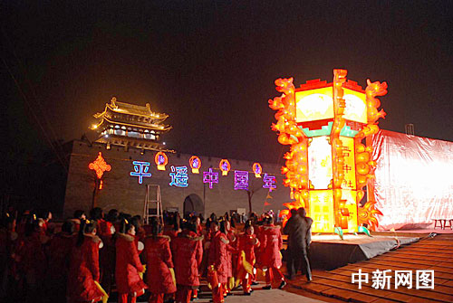節(jié)日里的平遙古城流光溢彩,燈彩迷人,各色燈組為當(dāng)?shù)鼐用窈椭型庥慰蛶?lái)了強(qiáng)烈的視覺(jué)沖擊和心靈震撼。裴旭亮 攝