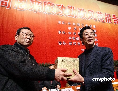 2月19日,浙江省紀委和紹興市委舉行了“周恩來廉政勤政風(fēng)范報告會”和“周恩來風(fēng)范在線網(wǎng)站”開通儀式系列紀念活動。周恩來的親屬、生前身邊工作人員在報告會上講述了周恩來廉政勤政的往事。今年3月5日是中國開國總理周恩來誕辰110周年,浙江紹興是周恩來的祖籍。中新社發(fā) 袁云 攝