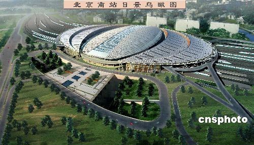 北京南站計劃于4月25日進(jìn)入機(jī)電設(shè)備調(diào)試,6月26日基本完工全面進(jìn)入試運(yùn)行,8月1日開通運(yùn)營。圖為北京南站效果圖。中新社發(fā) 張宇 攝
