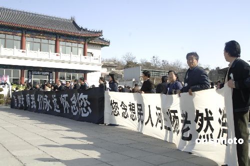 數(shù)百位專程從河北三河市趕來的市民打出悼念長幅。