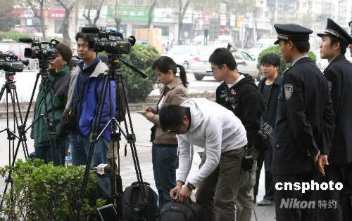 4月11日,天津市第二中級人民法院開庭對原中共上海市委書記陳良宇做一審判決。清晨開始,就有包括香港媒體在內(nèi)的多家媒體記者聚集在天津二中院附近進行跟蹤報道。中新社發(fā) 齊天 攝