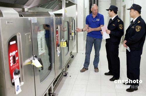 近日,北京海關(guān)在媒體村對(duì)一批奧運(yùn)物資進(jìn)行現(xiàn)場(chǎng)驗(yàn)放。該批物資為奧運(yùn)會(huì)所需的廚房設(shè)備,共計(jì)3個(gè)集裝箱。北京海關(guān)組織24小時(shí)的現(xiàn)場(chǎng)支持,到運(yùn)動(dòng)員村,媒體村,國(guó)際廣播中心和新聞媒體中心等各個(gè)現(xiàn)場(chǎng)對(duì)貨物進(jìn)行查驗(yàn)。中新社發(fā) 雷虹 攝