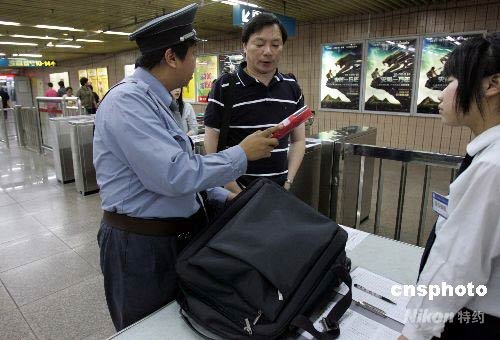 5月10日上午,在上海徐家匯地鐵站的安全檢查通道,一乘客因攜帶危險(xiǎn)物品被勸說退票。從今天起,上海軌道交通所有車站開辟專用安全檢查通道,由專人全天候逐一對乘客攜帶的箱包進(jìn)行安全檢查,據(jù)了解,從4月15日至今,上海軌交查堵危險(xiǎn)品1200余件。主要有液化氣鋼瓶、煙花、油漆、裝修膠水等,其中,依法對700余名違法攜帶危險(xiǎn)物品的人員依法做出行政處罰。中新社發(fā) 潘索菲 攝