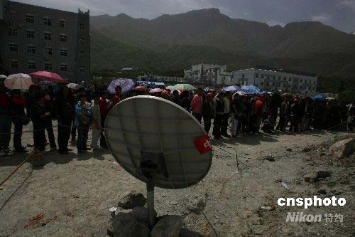 圖:茂縣開通首臺衛(wèi)星電話千人排隊等候