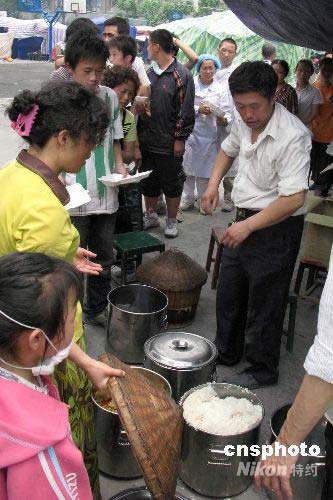 圖:四川都江堰一農(nóng)民為災(zāi)民送飯