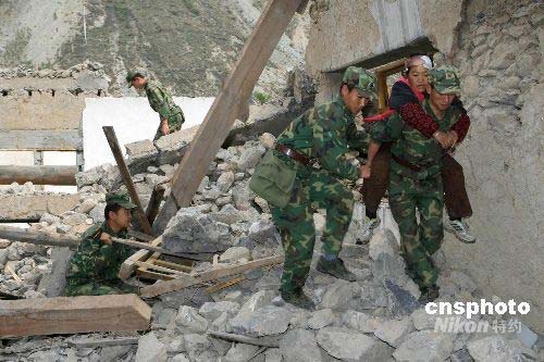 5月18日上午9時50分,成都軍區(qū)駐渝某集團軍搜救小分隊在四川省茂縣南興鎮(zhèn)救出55歲受傷婦女茍世英。中新社發(fā) 高效文 攝