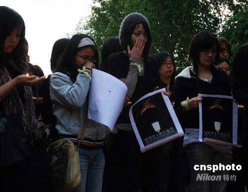 圖:留英中國學(xué)生為四川地震災(zāi)民祈禱