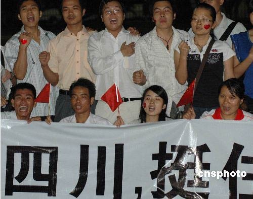 圖:中國(guó)"八零后"為四川災(zāi)區(qū)群眾加油打氣