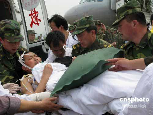 圖:災(zāi)區(qū)傷員乘專機(jī)飛抵柳州接受治療