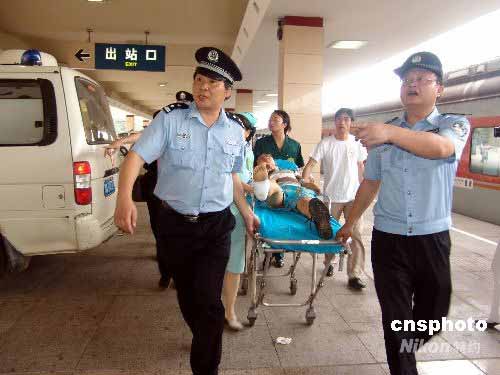 5月24日,從四川德陽(yáng)開(kāi)往長(zhǎng)沙的救15/4次列車(chē)抵達(dá)長(zhǎng)沙火車(chē)站。此趟列車(chē)共有238名來(lái)自四川地震災(zāi)區(qū)傷員來(lái)長(zhǎng)沙接受救治,傷員分別來(lái)自北川、安縣、汶川、德陽(yáng)等地,與其同行的還有67名醫(yī)務(wù)人員和239名陪護(hù)人員。在長(zhǎng)沙鐵路公安、武警官兵和醫(yī)務(wù)人員的幫助下,所有傷員分乘130臺(tái)救護(hù)車(chē)迅速被轉(zhuǎn)移到指定的中南大學(xué)湘雅醫(yī)院、湘雅二醫(yī)院、湘雅三醫(yī)院、省人民醫(yī)院、長(zhǎng)沙中心醫(yī)院等收治醫(yī)院。中新社發(fā) 郭國(guó)權(quán) 攝