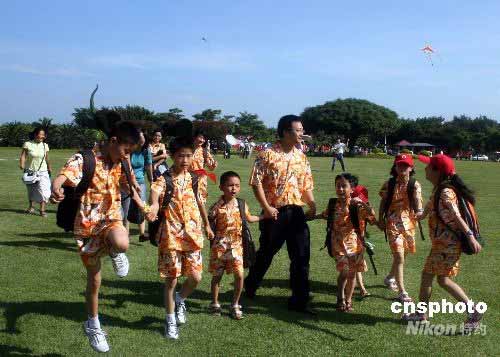 圖:首批九名四川災(zāi)區(qū)兒童愛(ài)心海南游