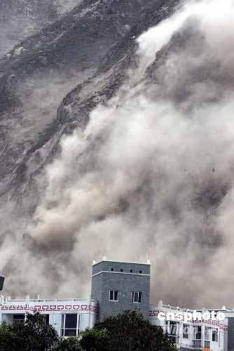 圖:四川25日余震引起山體滑坡