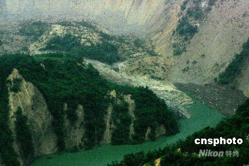 圖:空中俯瞰唐家山堰塞湖