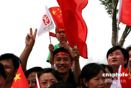 圖:奧運圣火泰州傳遞 群眾熱情歡迎