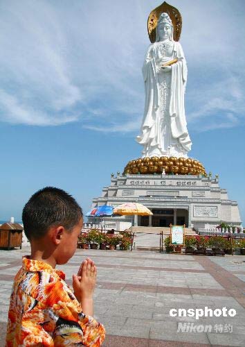 地震受災(zāi)兒童三亞南山108米海上觀音前祈福