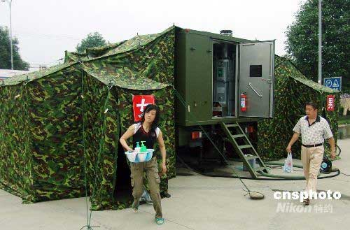 圖:濟(jì)南軍區(qū)野戰(zhàn)淋浴車(chē)開(kāi)進(jìn)都江堰災(zāi)區(qū)