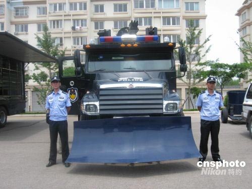 為了確保奧運(yùn)會帆船帆板比賽的安全進(jìn)行,青島公安部門引進(jìn)了排爆機(jī)器人、反恐水炮車等一大批具有國際一流水平的反恐防爆裝備。圖為公安部門引進(jìn)的反恐水炮車,目前全國僅有三輛。中新社發(fā) 李進(jìn)梅 攝