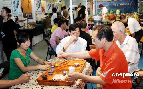 7月3日,為期4天以“綠色、健康、茶文化”為主題的2008大連第四屆國際茶博會(huì)暨世界華僑華人以茶會(huì)友大會(huì)在大連星海會(huì)展中心開幕。本屆茶博會(huì),共設(shè)展位200余個(gè)。展會(huì)期間除舉辦茶葉、茶具壺、茶藝賽外,還將舉辦“東北暨環(huán)渤海地區(qū)茶博覽第二次峰會(huì)”、“以茶會(huì)友”文藝演出、茶健康知識(shí)講座、茶葉推廣會(huì)、現(xiàn)場炒茶表演等十大活動(dòng)。中新社發(fā) 劉德斌 攝