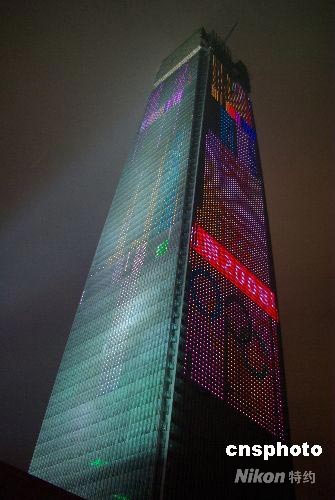 圖:"首都第一高樓"五彩幕墻顯奧運元素
