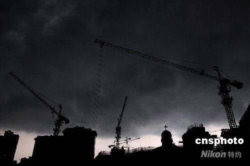 受2008年第七號臺風“海鷗”的影響,7月18日下午4點30分左右,層層黑云籠罩廈門城區(qū)上空,晝夜難分,約10分鐘后,雷陣雨傾盆而下。據(jù)當?shù)貧庀笈_消息,廈門受到臺風外圍環(huán)流的影響,未來兩天可能出現(xiàn)中陣雨和雷陣雨,局部地區(qū)有大雨。中新社發(fā) 柳濤 攝