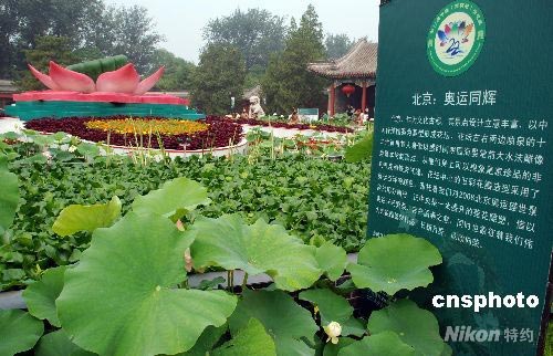 圖:圓明園內(nèi)荷花綻放 喜迎北京奧運