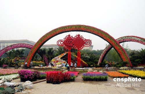7月25日,北京天安門廣場西側(cè)以彩虹門和中國結(jié)的組合造型花壇亮相,具有獨(dú)特的中國風(fēng)味,吸引眾多游客。據(jù)了解,今年天安門廣場花壇創(chuàng)下歷年之最,持續(xù)時間最長,花材用料最多,達(dá)到100萬盆,80余種。中新社發(fā) 張雙雙 攝