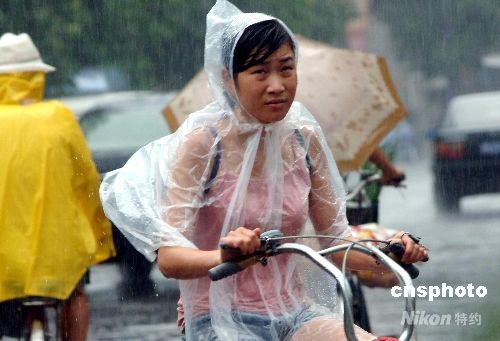 7月28日,福州一名騎單車的市民冒著大雨,艱難前行在上班途中。福建省氣象臺(tái)預(yù)計(jì)強(qiáng)臺(tái)風(fēng)“鳳凰”可能于28日上半夜在福建連江到廈門之間沿海再次登陸。中新社發(fā) 劉可耕 攝
