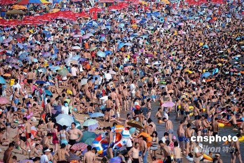 奧運會臨近,中外游人紛紛來到奧帆賽舉辦地青島觀光看奧帆賽。臺風“鳳凰”影響過后,青島各海濱浴場陸續(xù)向游人開放。八月三日,青島第一海水浴場的中外游人突破十萬人,是今年入夏以來青島第一海水浴場的最高紀錄。中新社發(fā) 曲連遵 攝