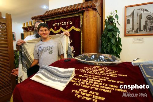 與父母一起到北京觀看奧運會的13歲美國少年依斯科,8月12日在北京猶太人中心精心準(zhǔn)備即將到來的成人禮儀式,他表示能夠在中國度過這個特別的日子格外興奮。 中新社發(fā) 王瑤 攝