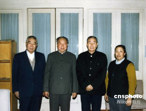 圖為1988年4月,華國鋒和夫人在家中會見抗日戰(zhàn)爭時期在一起工作過的老戰(zhàn)友。