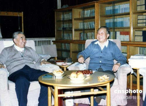圖為1988年4月,華國鋒在住所高興地見到以往在湖南工作的老戰(zhàn)友。