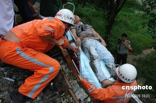 九月九日中午兩點多,廣西欽州市消防官兵在前進路兩幢樓房的墻縫中救出一被困者,經(jīng)警方辨認,這名獲救者正是當日凌晨警方在追捕時,在四樓忽然“消失”掉的竊賊。圖為消防官兵將竊賊從二樓抬下地面。 中新社發(fā) 田華松 攝
