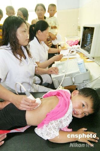 9月22日,自三鹿嬰幼兒奶粉等一批含有三聚氰胺的問題嬰幼兒奶粉暴光后,江蘇省贛榆縣迅速啟動小兒腎結(jié)石診療綠色通道,各大醫(yī)院開辟從咨詢、診斷、檢查到住院等各個環(huán)節(jié)的專門場所,確!敖Y(jié)石寶寶”得到及時有效的救治。 中新社發(fā) 司偉 攝