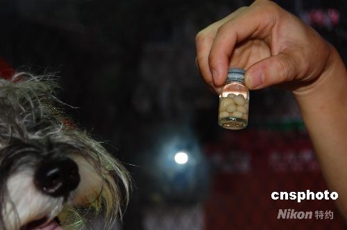 9月26日,廣西南寧一家寵物醫(yī)院的醫(yī)生展示一個(gè)小狗手術(shù)后取出的十余顆結(jié)石。小狗主人陳女士介紹說,該小狗未滿一歲,出生后由于體弱,主人就給它喂食三鹿奶粉,后來也曾食用過少量伊利奶粉,小狗三個(gè)月時(shí)出現(xiàn)排尿困難,之后去寵物醫(yī)院診治,至今已經(jīng)導(dǎo)尿二十余次,做結(jié)石手術(shù)三次,共發(fā)現(xiàn)幾十顆結(jié)石,最近一次手術(shù)在十天前進(jìn)行,發(fā)現(xiàn)十余顆結(jié)石,最大的結(jié)石如同花生粒一般。醫(yī)生說,這是他從醫(yī)十多年第一次見這么小的狗患結(jié)石,也是他所見到的最大的公狗結(jié)石,結(jié)石的原因與食用奶粉可能存在很大關(guān)系。 目前,小狗主人已經(jīng)停止給小狗喂食奶粉。中新社發(fā) 劉萬強(qiáng) 攝