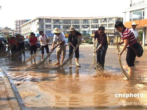 截至10月2日下午13時,邕江南寧市邕寧區(qū)蒲廟河段水位為70.54米,比9月30日最高水位71.96米下降1.42米,洪水逐漸消退。當?shù)馗鳈C關單位干部職工放棄國慶休假,投入到清掃垃圾、清除淤泥和噴灑消毒劑等災后恢復工作中。劉秋明 攝