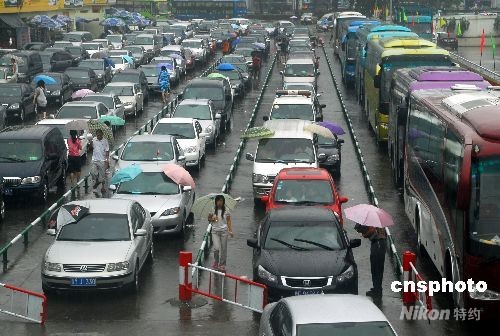 2008年10月4日消息,海南受今年第17號(hào)熱帶風(fēng)暴“海高斯”影響開(kāi)始漸弱,瓊州海峽不同抗風(fēng)等級(jí)的船舶陸續(xù)復(fù)航。來(lái)自廣東、廣西、云南、福建等省的自駕車(chē)游客結(jié)束黃金周休閑游,開(kāi)始返程過(guò)海,在海口秀英港等候乘船過(guò)海的自駕車(chē)排成了長(zhǎng)龍。中新社發(fā) 善平 攝